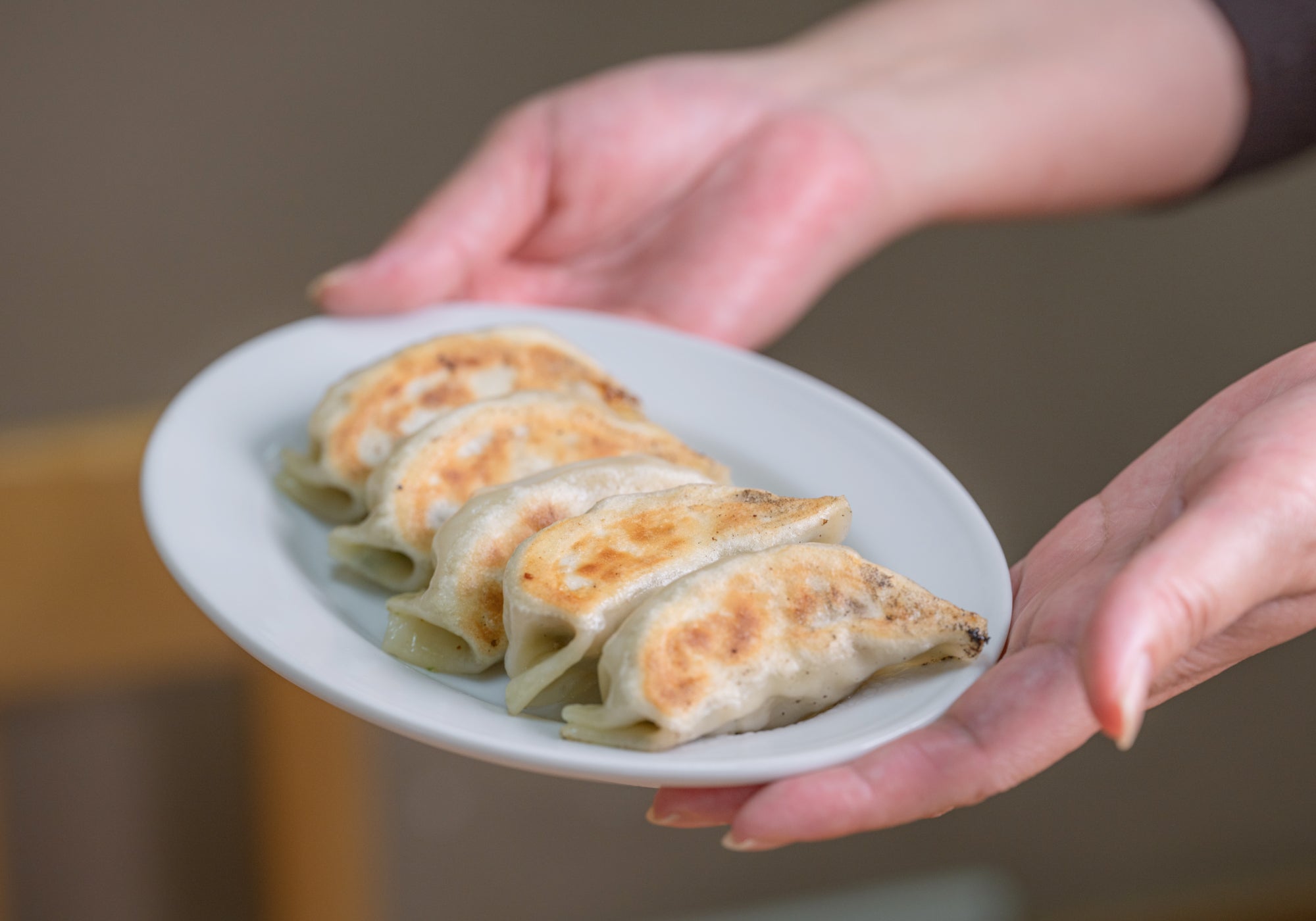 当店の餃子は国産食材を使用し、肉汁たっぷりで風味豊かな餡をもちもちの皮で包んでいます。そのままでも、タレをつけても美味しく召し上がれます。