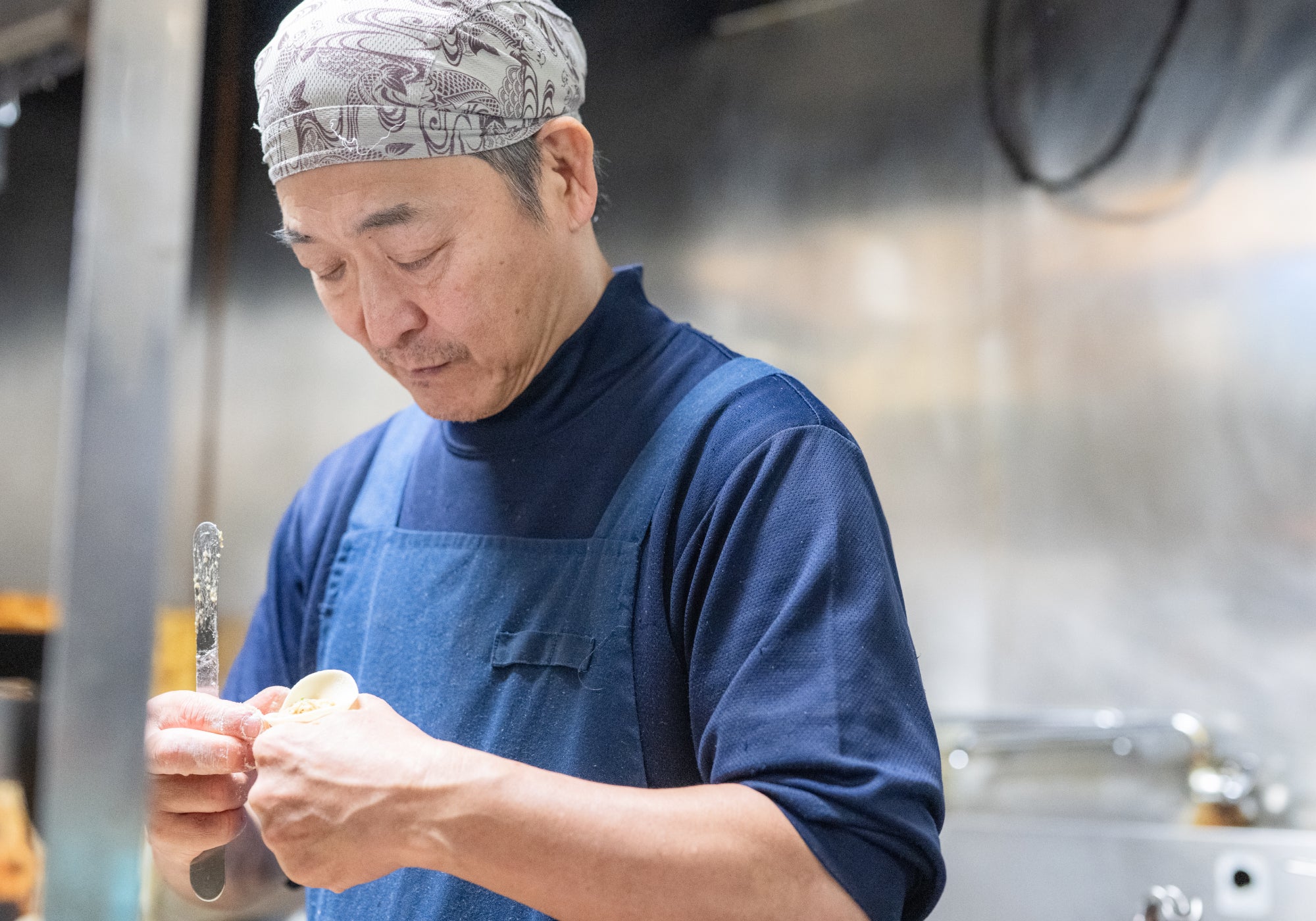 接客担当の妻と共に、心を込めた料理で皆様に幸せなひとときをお届けしています。これからも、私たちの餃子を皆さんにお届けしたいと思っています。